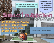 Ab Montag, 07.07.25, ist das Passwort für die 1. Ausgabe unserer Schülerzeitung „Smartmäppchen" erhältlich.